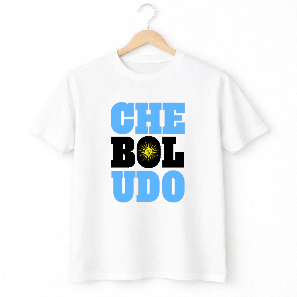Vestí nuestra jerga con la remera Che Boludo. Un diseño con el Sol de Mayo y tipografía icónica para llevar tu identidad nacional con mucho estilo.
